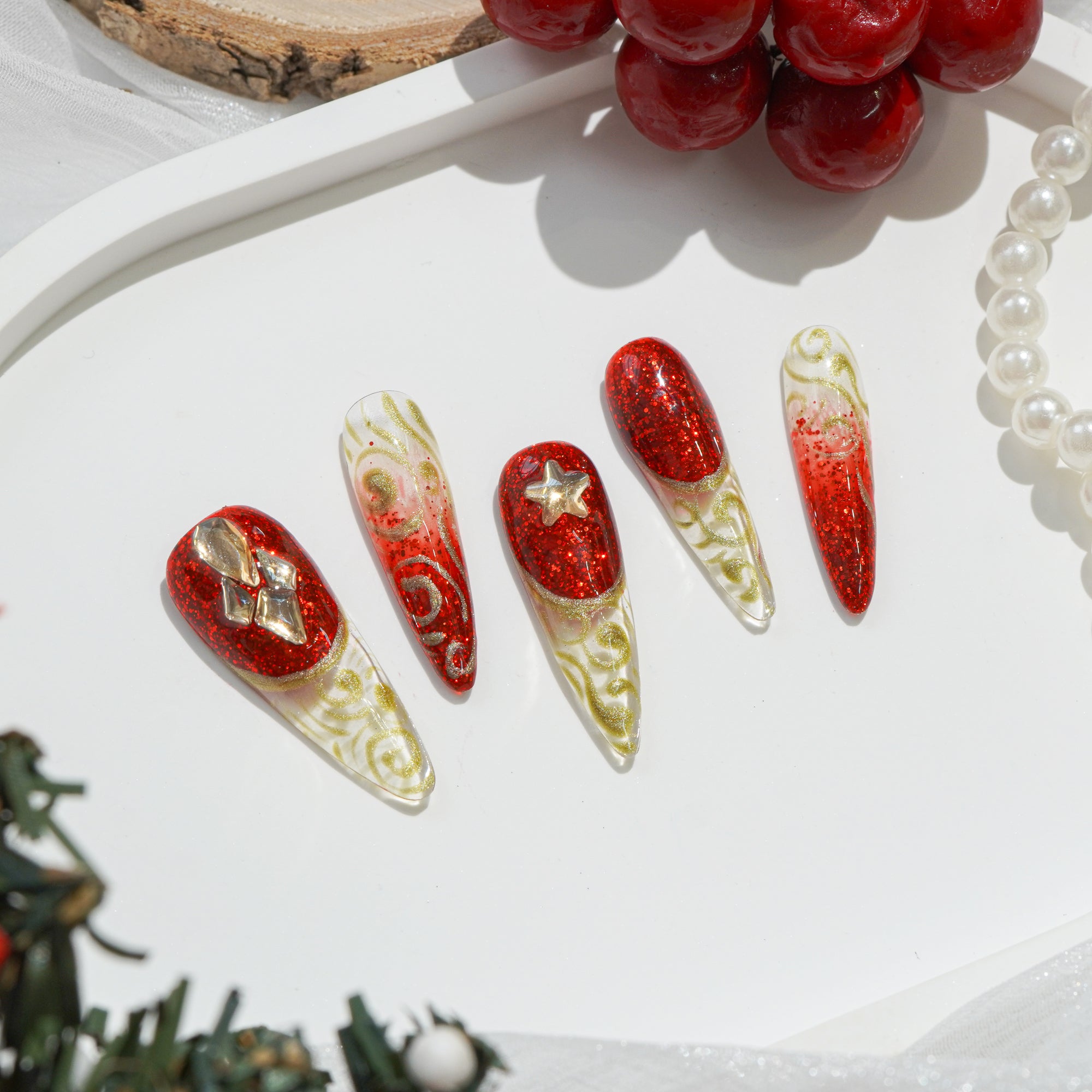 Bring the magic of winter and the joy of Christmas to your fingertips with Handora Nails' handcrafted press-on nail sets – perfect for adding festive flair to your holiday look. Each set is thoughtfully designed with cozy winter elements like snowflakes, shimmering accents, deep reds, and pine greens to capture the season's spirit in every detail.