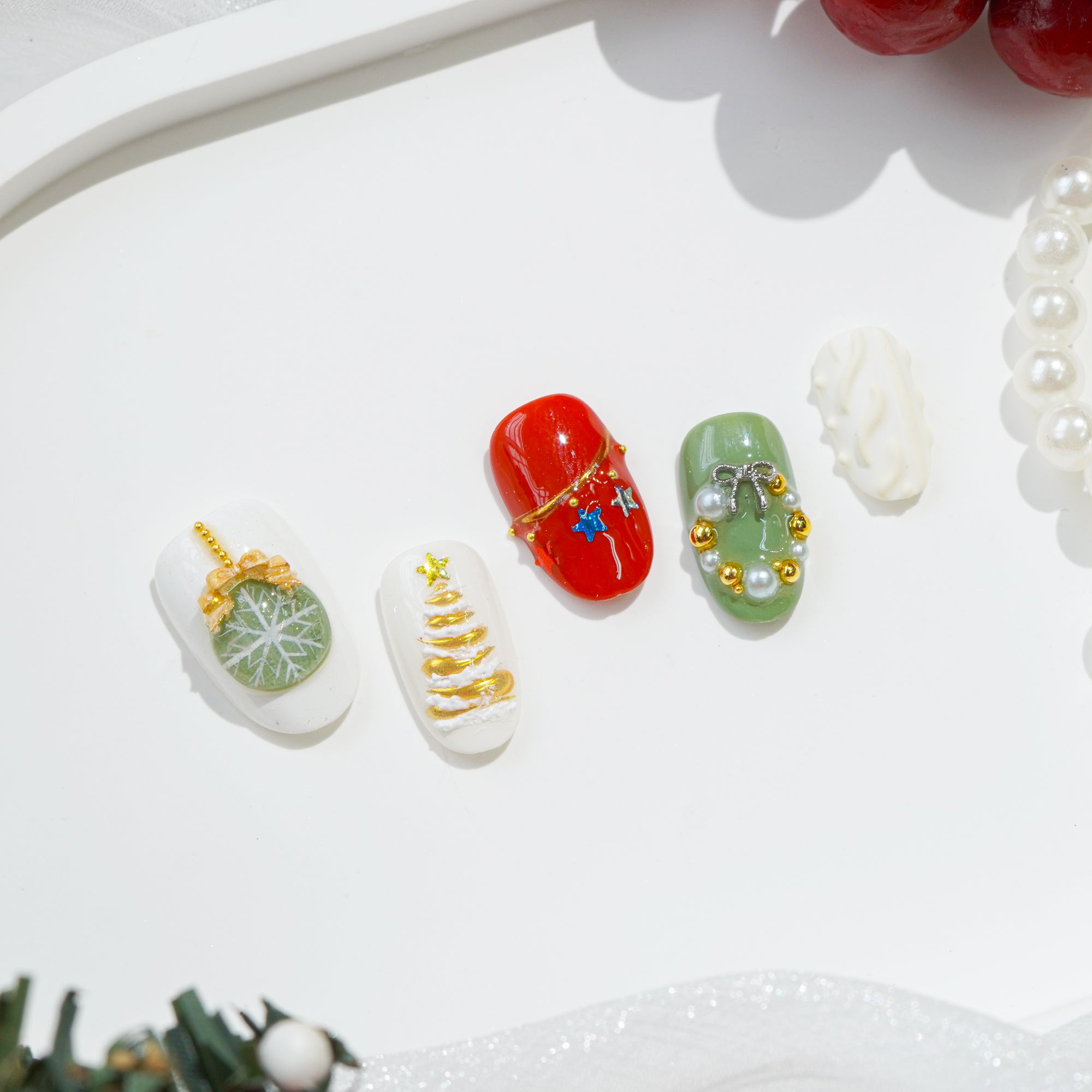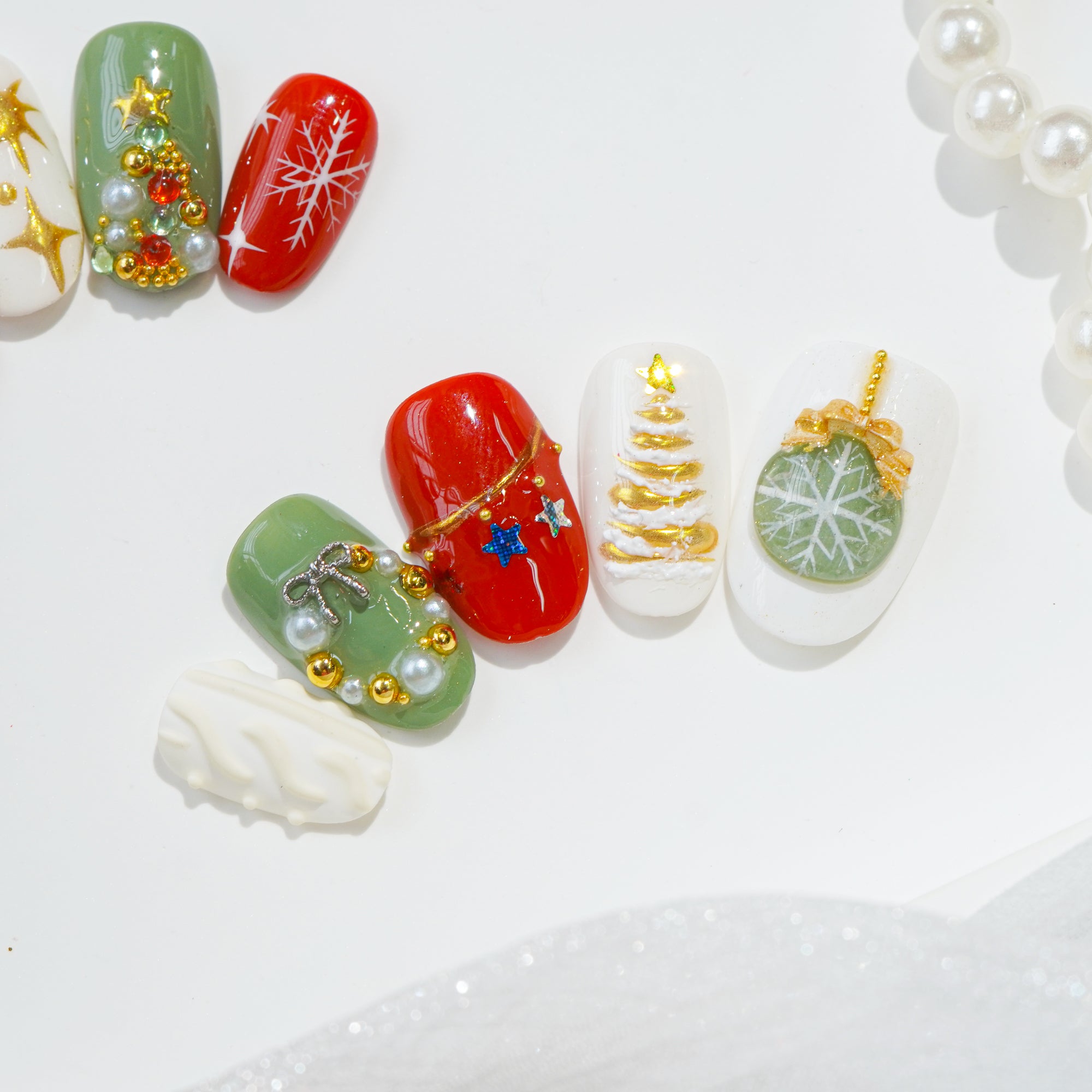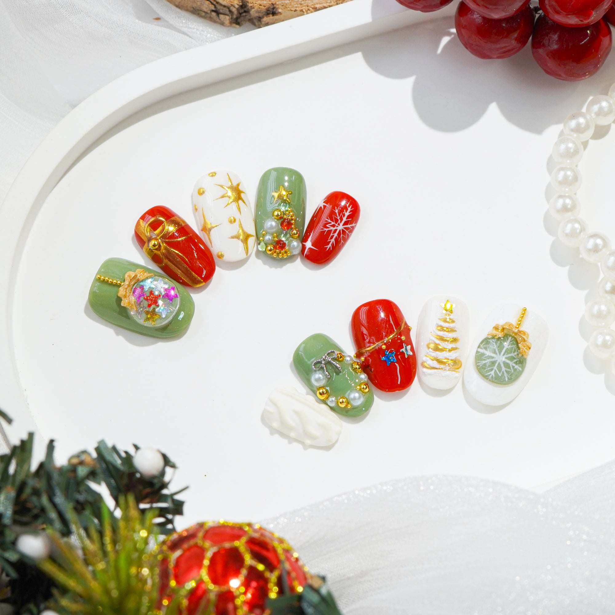 Bring the magic of winter and the joy of Christmas to your fingertips with Handora Nails' handcrafted press-on nail sets – perfect for adding festive flair to your holiday look. Each set is thoughtfully designed with cozy winter elements like snowflakes, shimmering accents, deep reds, and pine greens to capture the season's spirit in every detail.