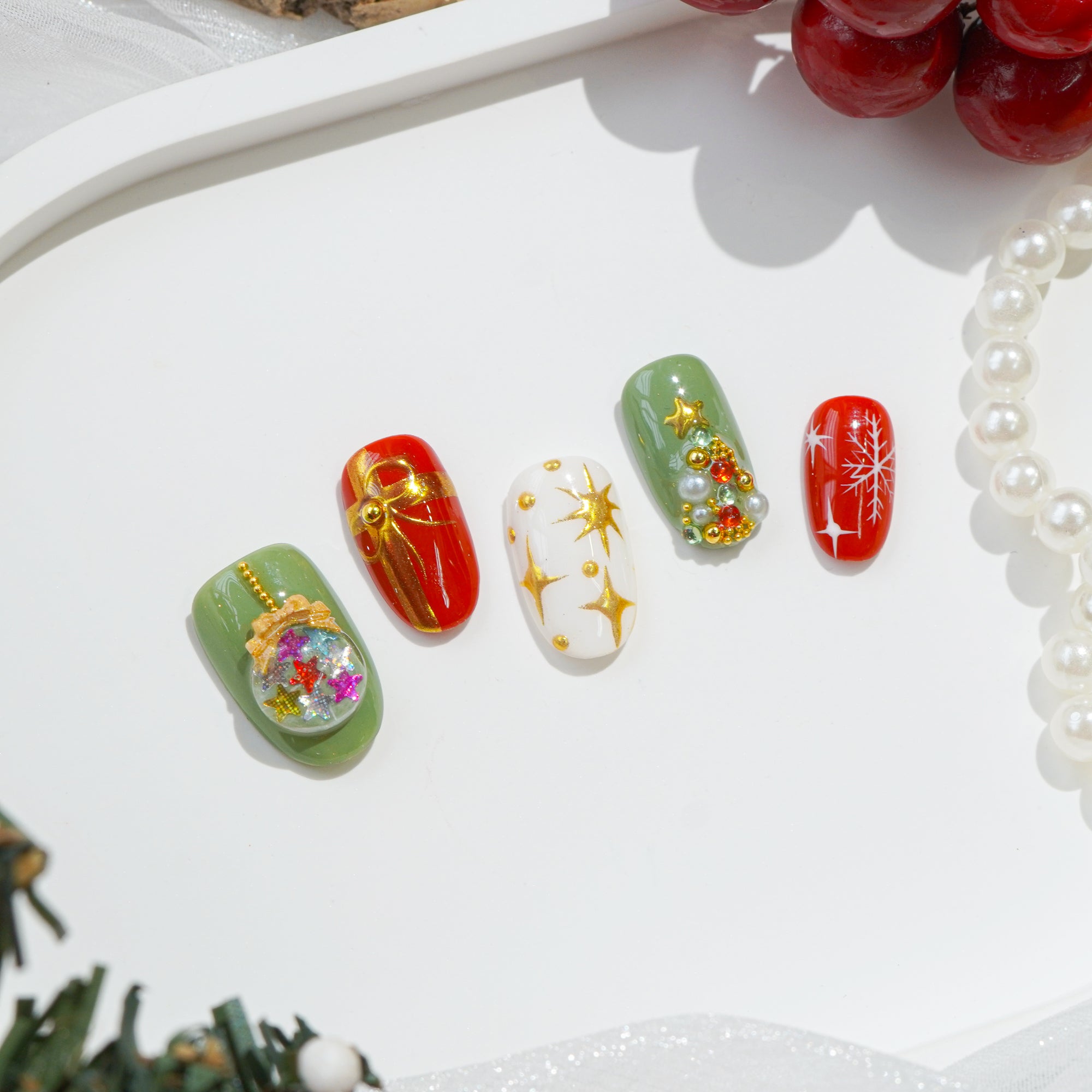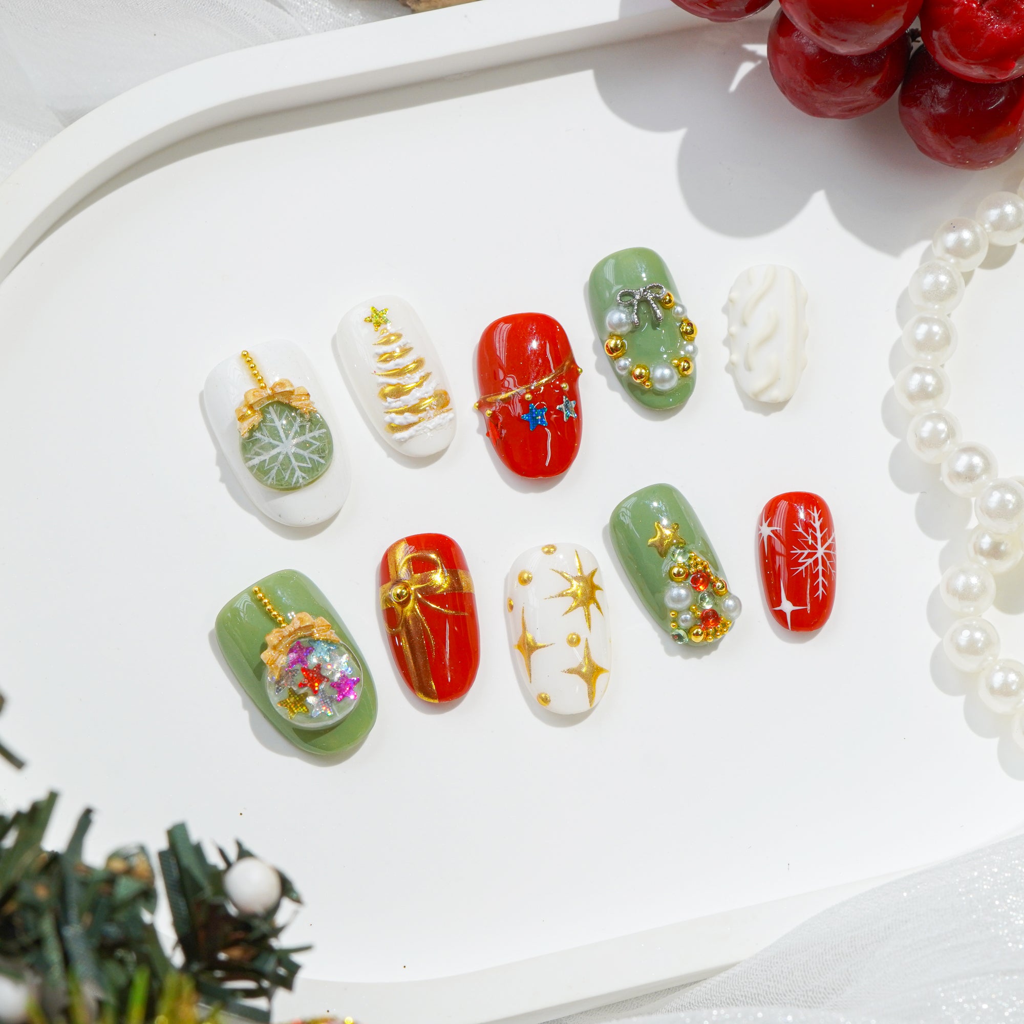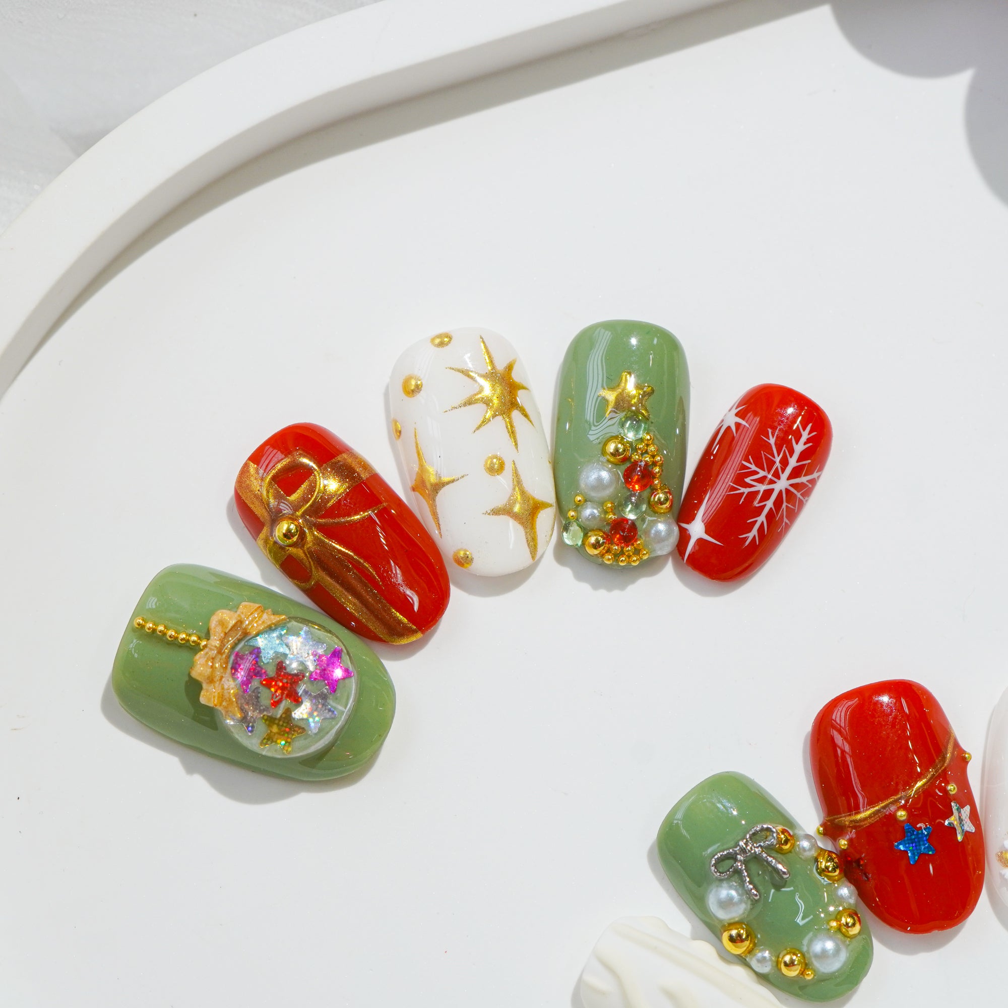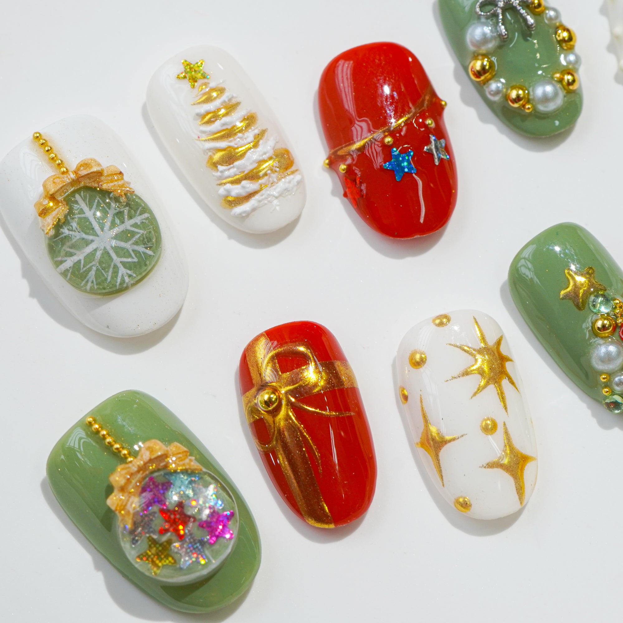 Bring the magic of winter and the joy of Christmas to your fingertips with Handora Nails' handcrafted press-on nail sets – perfect for adding festive flair to your holiday look. Each set is thoughtfully designed with cozy winter elements like snowflakes, shimmering accents, deep reds, and pine greens to capture the season's spirit in every detail.