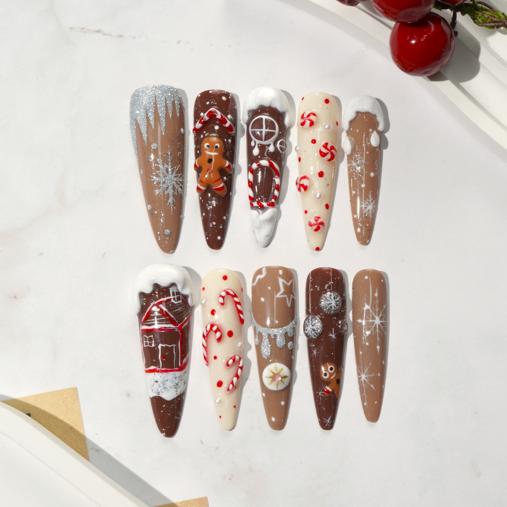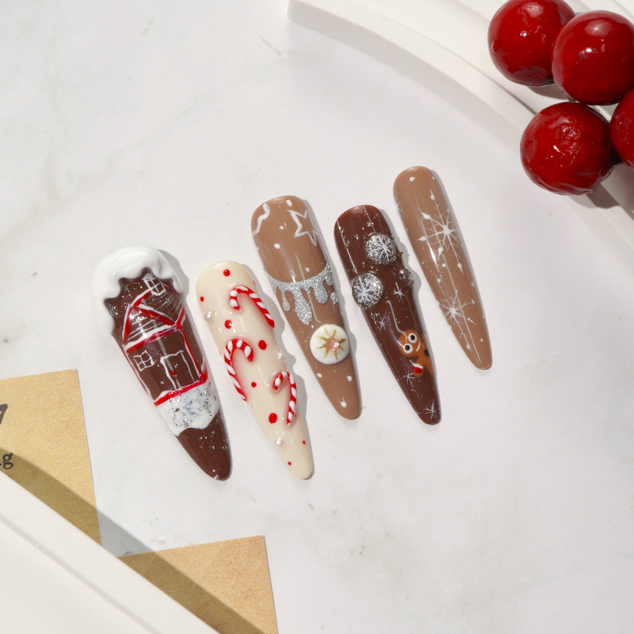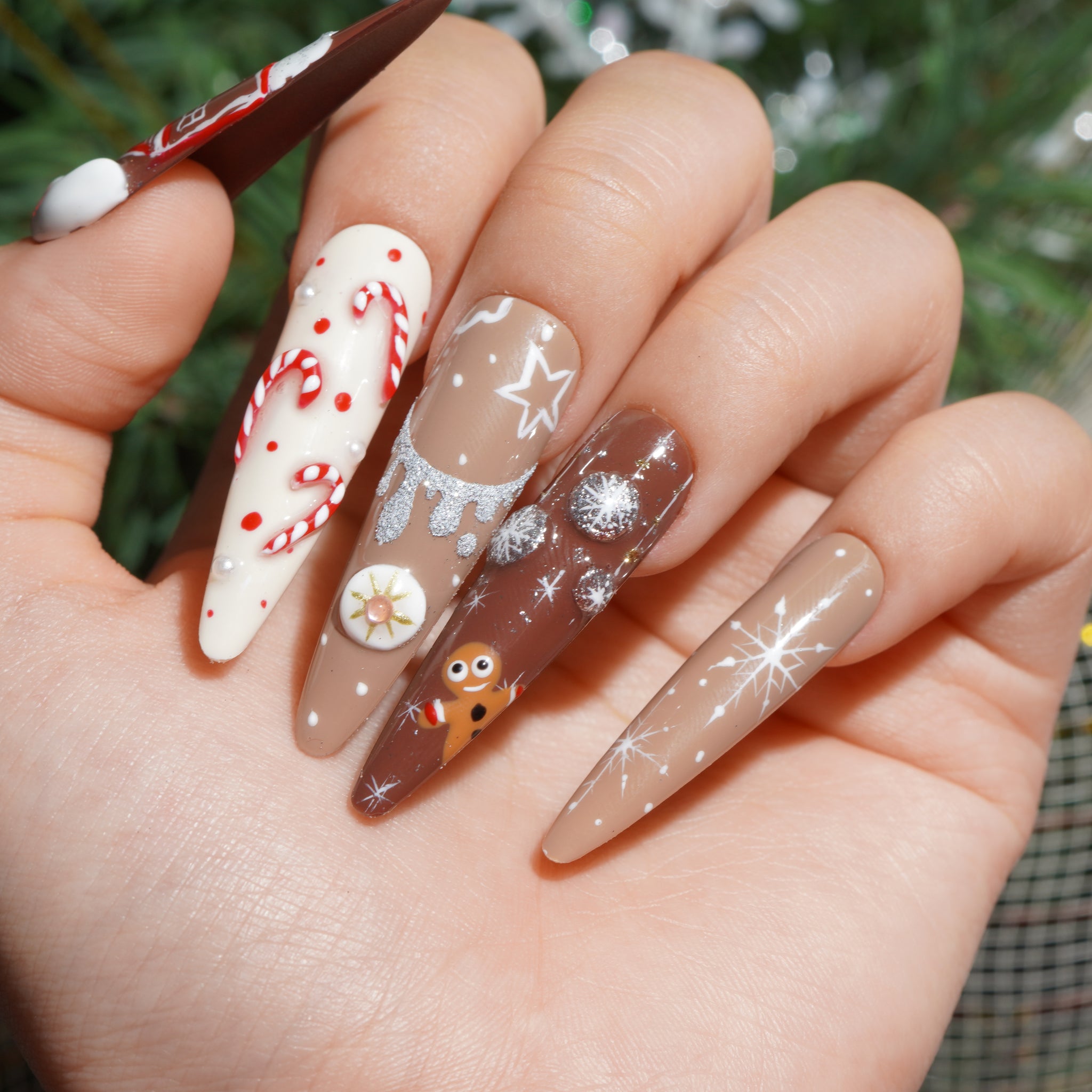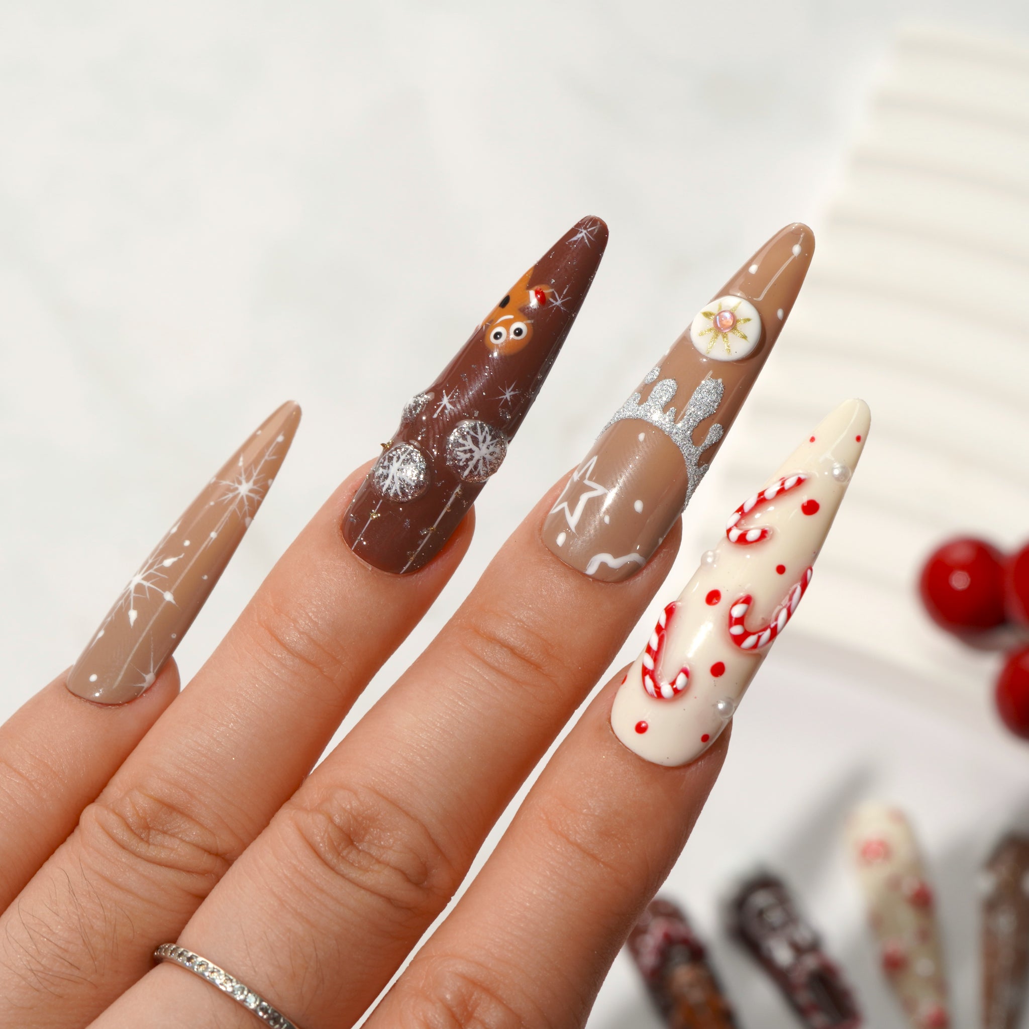 Bring the magic of winter and the joy of Christmas to your fingertips with Handora Nails' handcrafted press-on nail sets – perfect for adding festive flair to your holiday look. Each set is thoughtfully designed with cozy winter elements like snowflakes, shimmering accents, deep reds, and pine greens to capture the season's spirit in every detail.