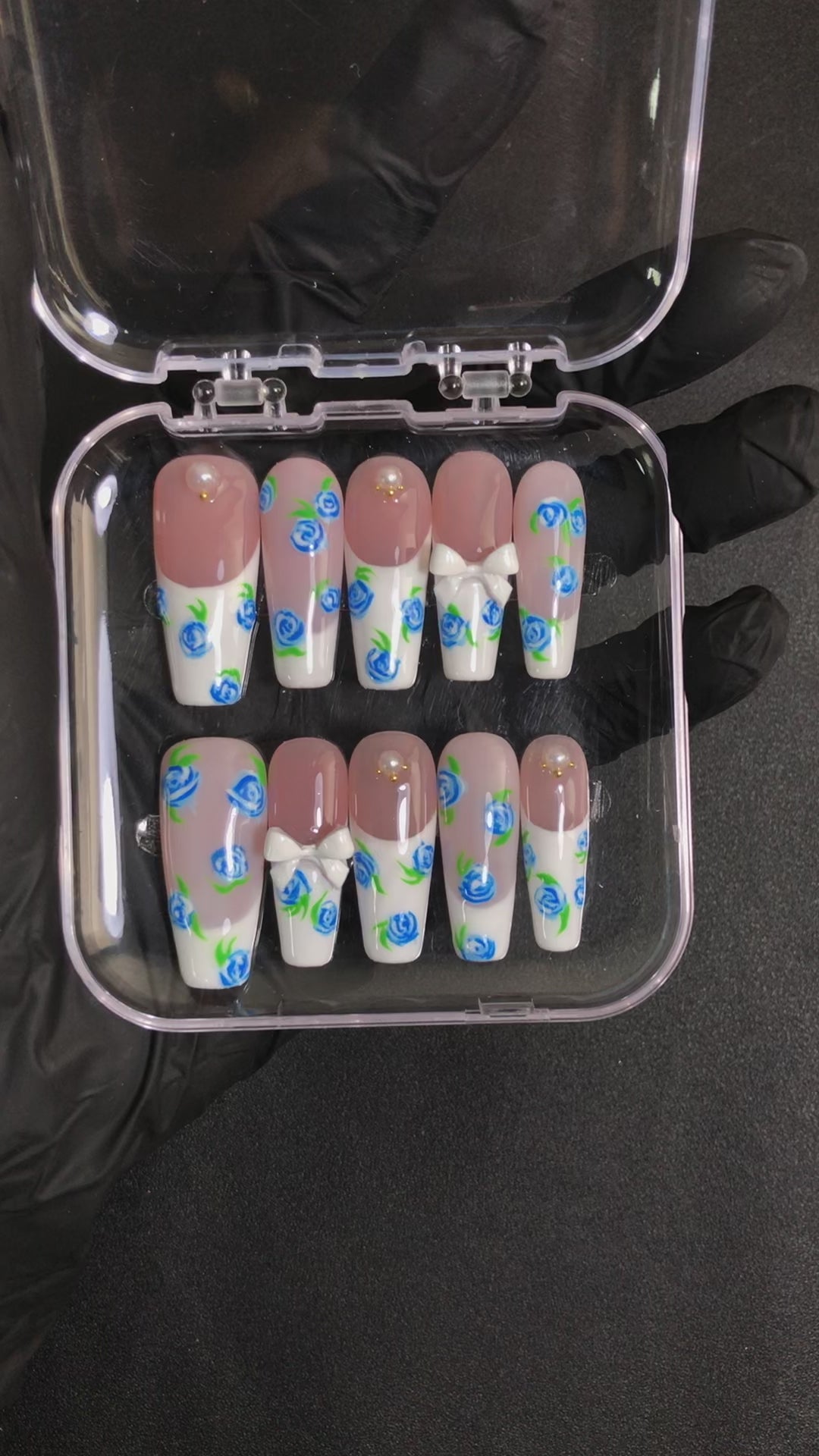 I absolutely love these press on nails. I’ve worn press ons for years and I have to say the quality is amazing. The back of the nails are pre buffed so they stay glued on very well. The handmade designs give it that personal and beautiful touch. Someone commented on my nails and couldn’t believe they were press ons. I will definitely be purchasing again.